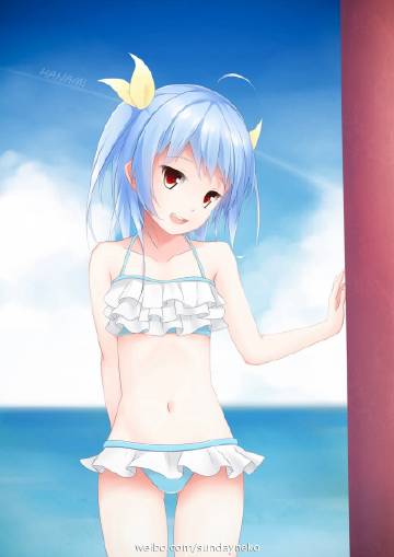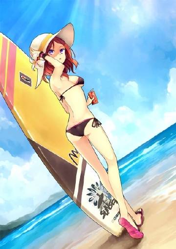 #日本印象# 「和Hanami酱一起去伊豆旅行吧」伊豆的海滩真的美的令人窒息,原来以为这种海滩只有南国小岛才有。场景出自@guanyuhan426 的视频「日本印象·夏」的花絮下集中,那个礁石上的鸟居。露出度这么高的图还是第一次画呢。大图网页链接;视频网页链接