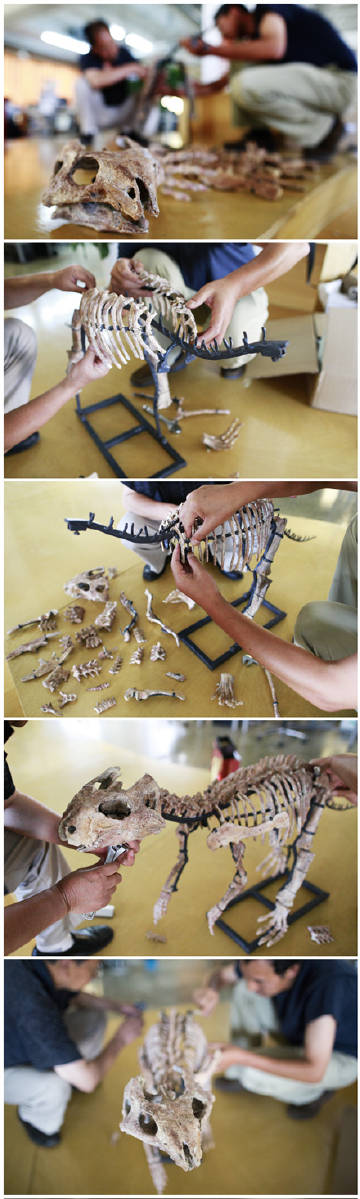 这俩骨头萌我一脸 @果壳: 【果壳网新成员:皱纹曙光角龙】今天,果壳办公室来了个生活在白垩纪的新朋友:皱纹曙光角龙……的1:1超仿真化石模型。小朋友体长一米多,虽然叫角龙但木有角(作为弥补,它有小虎牙)。名字当中的“曙光”,昭示了它的古老。从今天起,这只皱纹曙光角龙就是果壳的正式员工啦:网页链接